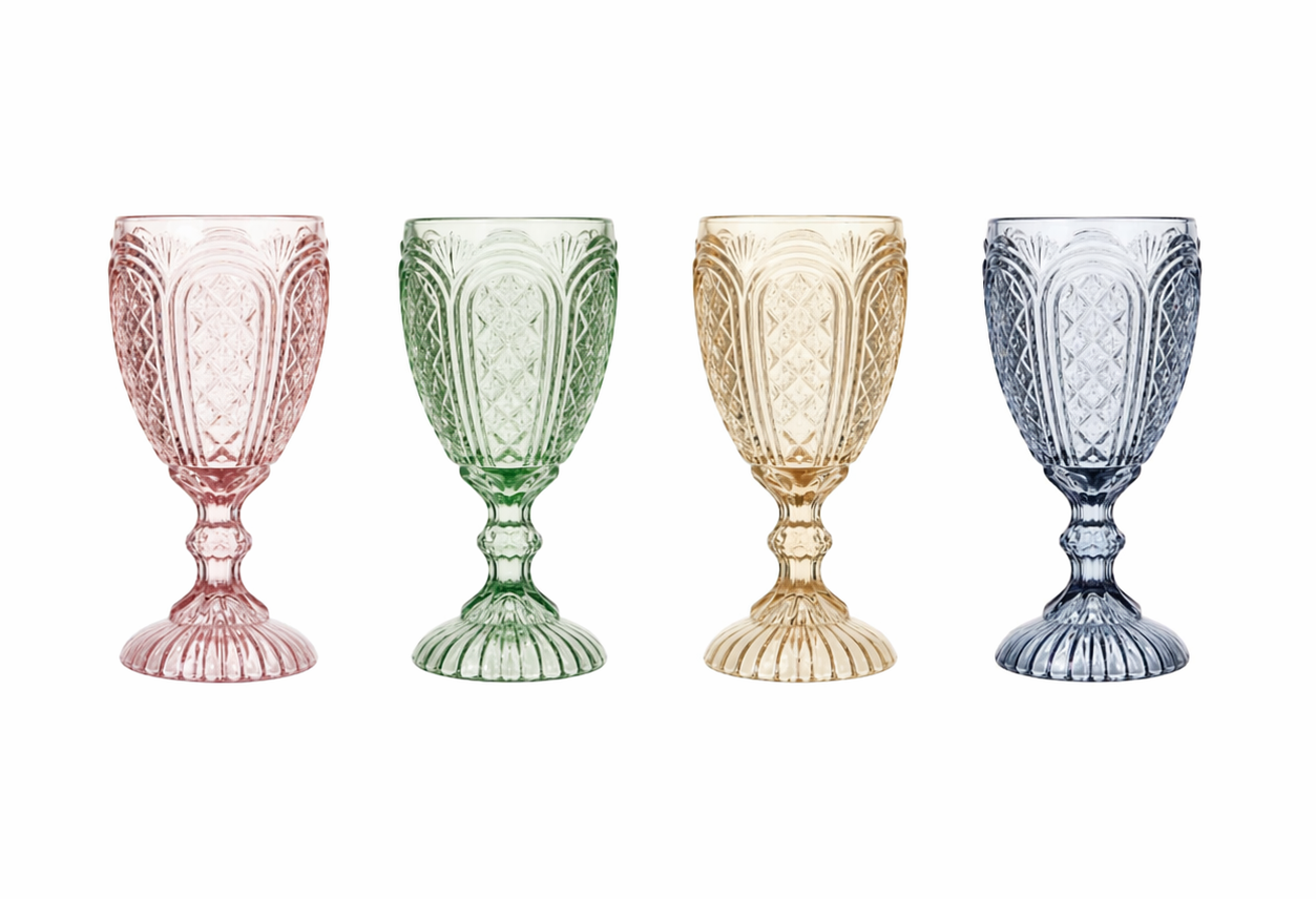 Our Carousel Goblet Collection offers a stunning range of vintage-inspired glassware. With its unique designs and vibrant colors, this collection is perfect for elevating the aesthetic of any event.