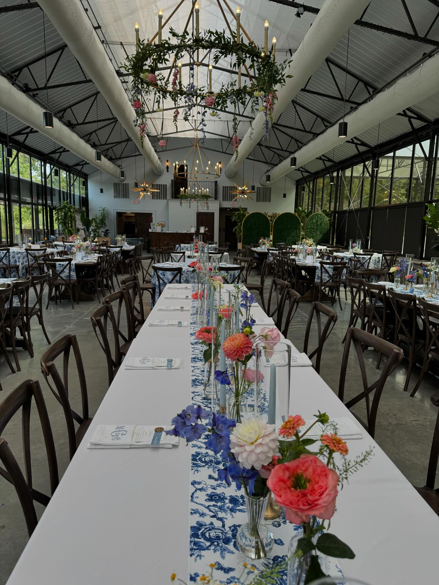 Belle Fleur Duke Blue linen features a classic French Toile print in a rich shade of blue, adding a touch of sophistication to your table setting. Perfect for showers, tea parties, birthdays, and weddings.